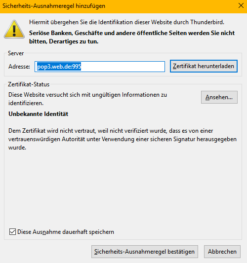 Hinzufügen einer ausnahme in avast. Die du als ausnahme hinzufügen möchtest im erscheinenden dialog aus und klicke auf ok. Falls es auch bei korrekter installation des nötigen zertifikats mit der neuen version des thunderbird nicht funktioniert, schau in die release notes, ob es diesbezüglich eine änderung gab. • 7 sp1 oder höher, 8.x außer rt und starter edition, 10 außer mobile und iot core Allerdings sollten sie die webseite kennen und.